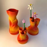 A concepção do vaso passa por duas etapas de modelagem: a primeira dentro do computador, onde cria-se uma base para ser impressa em 3D. A segunda etapa acontece no mundo físico, já com a base do vaso impressa. O objeto é aquecido e passa por um processo de termomoldagem manual.