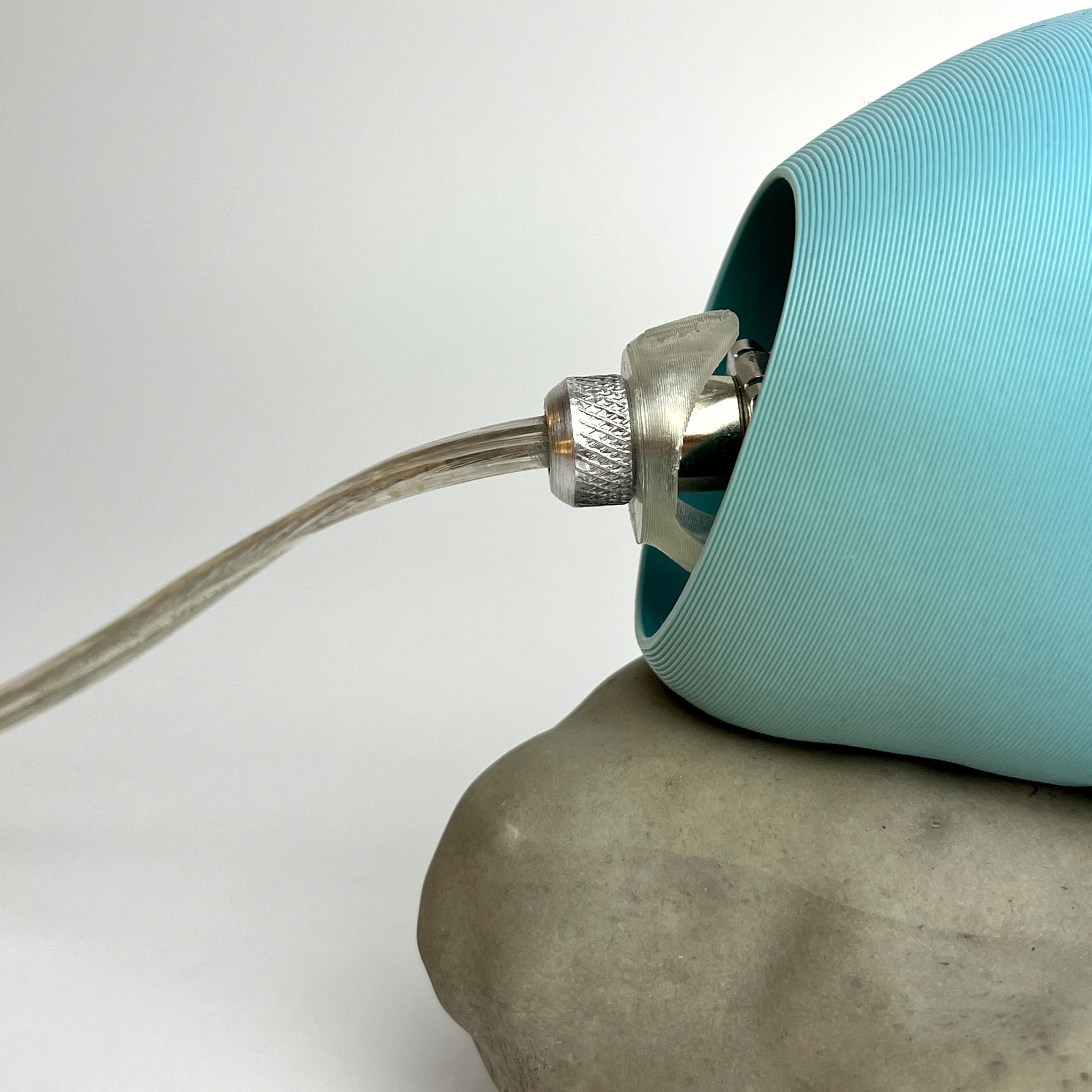 Cúpula impressa em 3D sobre pedra de cimento. A luminária vem pronta para uso, lâmpada inclusa.