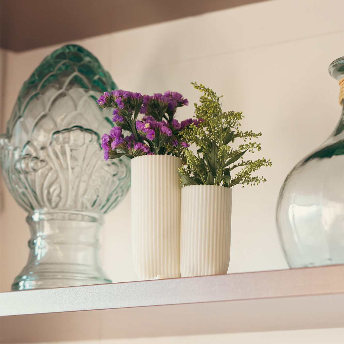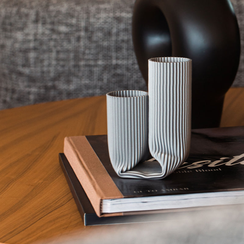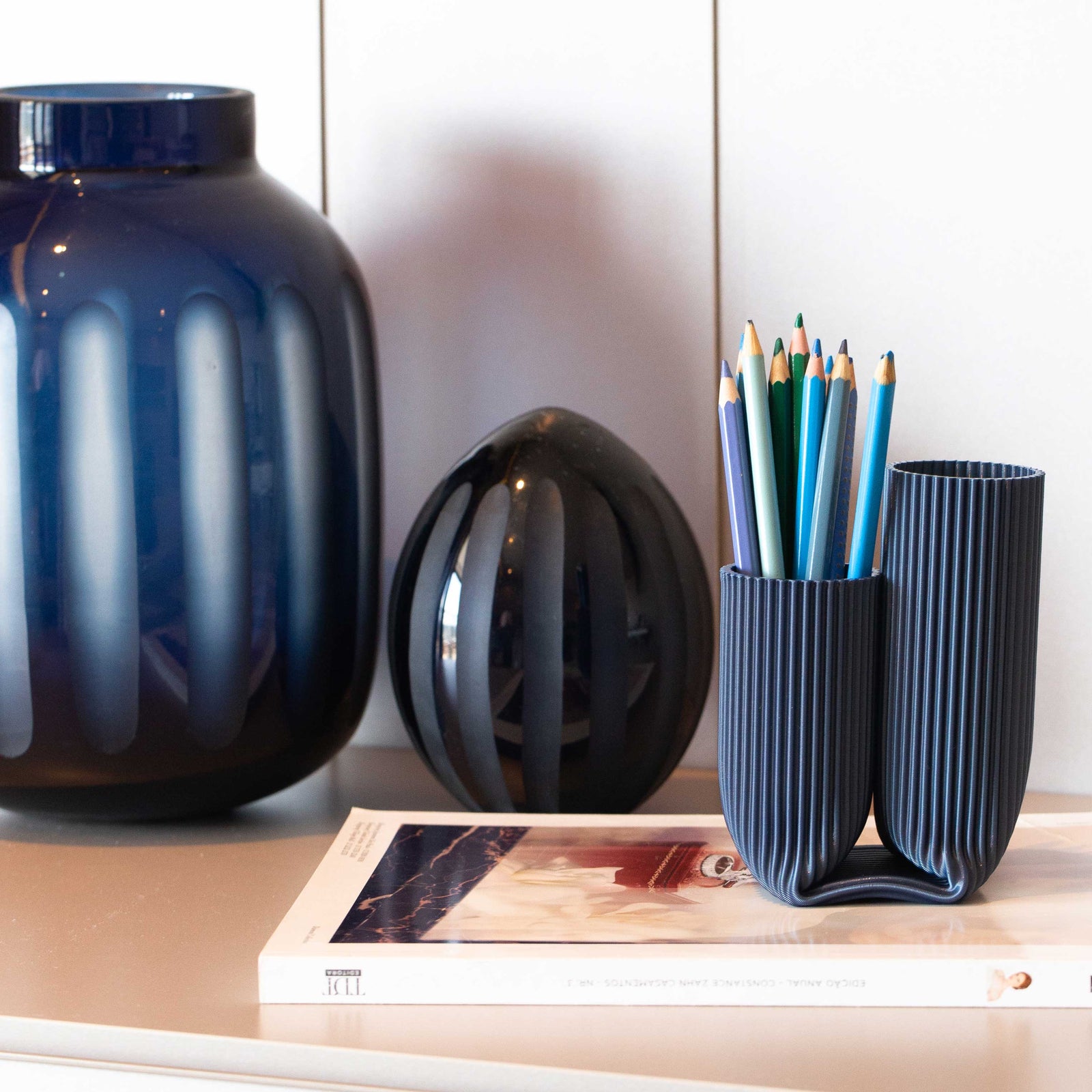 Imprimir, Esquentar, Dobrar. Estas são as três ações que definem o processo de fabricação da escultura Porta Treco. Um tubo texturizado é impresso em 3D utilizando o PLA, um bioplástico produzido a partir de milho e cana de açúcar. A impressão leva 4h e 30 min, e dá origem a uma peça em formato cilíndrico que é leve, porém resistente. A peça então passa pelo processo de termomoldagem manual, em que é aquecida com um soprador térmico. A partir daí, um artesão dobra a peça com o auxílio de luvas térmicas.  O resultado é uma peça que encanta pela beleza e simplicidade. Pode ser utilizada como escultura para decorar a casa ou como porta treco. Use a criatividade e organize seus objetos com estilo. Escultura disponível em 8 cores: Verde, Azul, Terracota, Cinza, Pérola, Preto, Translúcido e Rosa.