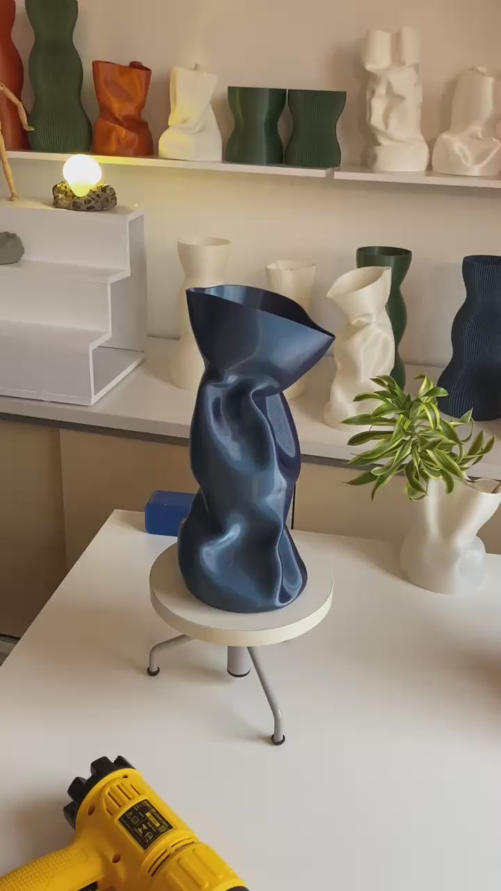 Vaso utilitário impresso em 3D com bioplástico e modelado à mão. Desenho expressivo e textura delicada. Cada vaso é único, modelado pelas mãos de artistas.