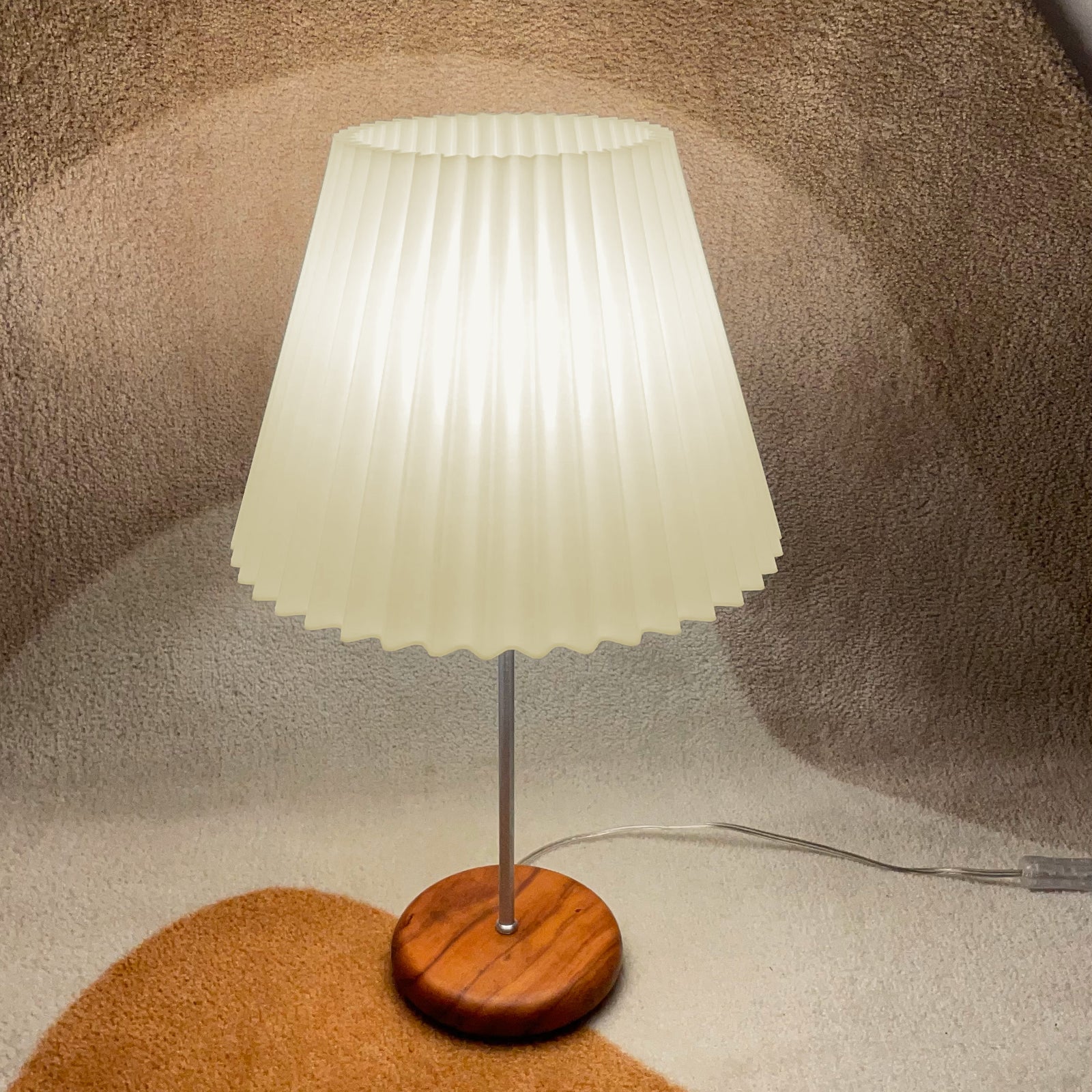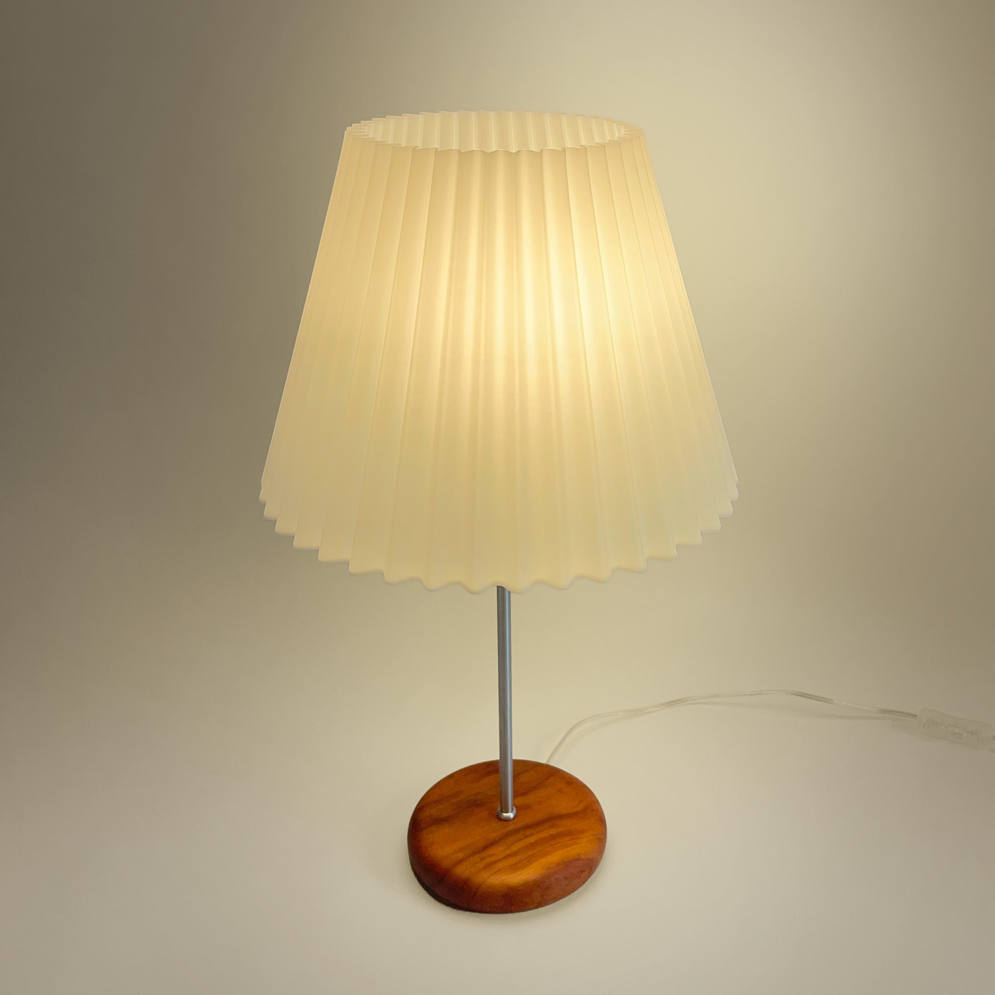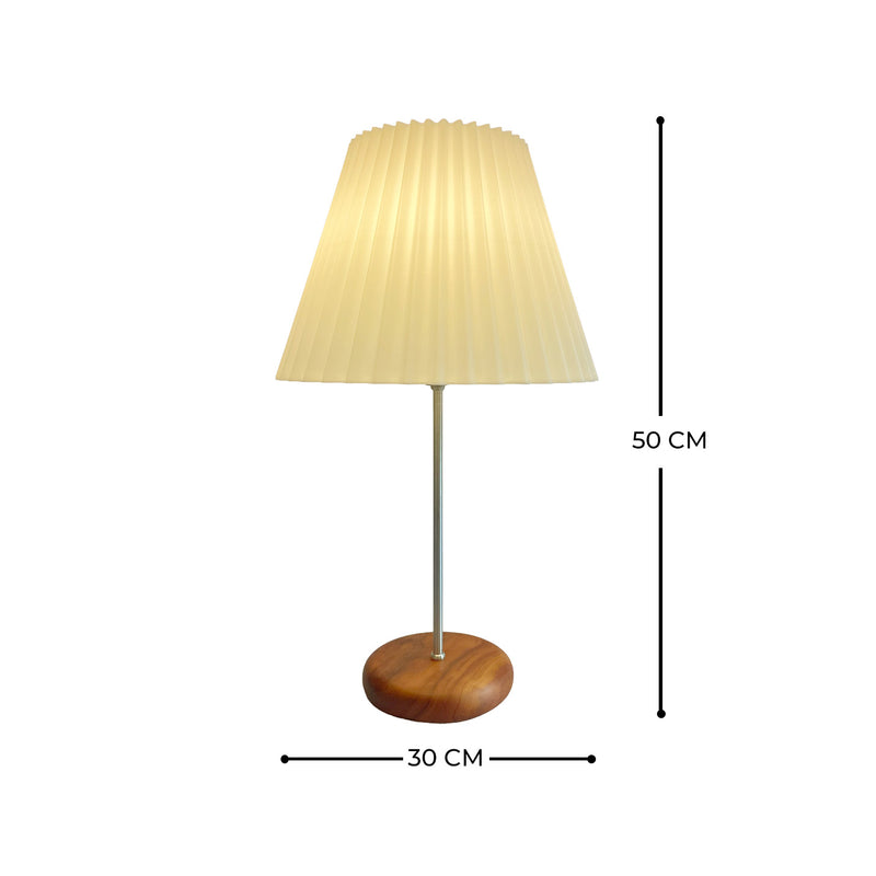 A cupula sanfonada contrasta com a base torneada em madeira de peroba rosa, formando a composição perfeita para iluminar com conforto o seu ambiente!
