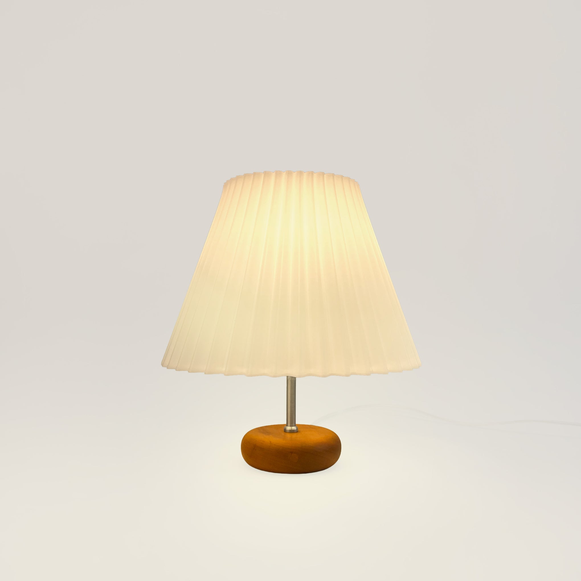 A cupula sanfonada contrasta com a base torneada em madeira de peroba rosa, formando a composição perfeita para iluminar com conforto o seu ambiente!